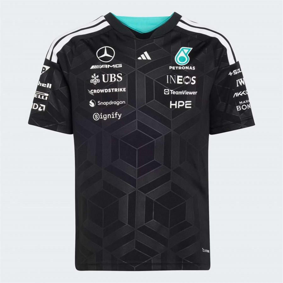 Meet the Mercedes-AMG Petronas Formula 1 Team Driver Jersey. Inspired by motorsports, this jersey is designed for young fans, blending form and function seamlessly. It features our Climacool technology. Cool. Dry. Ready. Climacool wicks and disperses sweat for a cool, dry and distraction free performance. Crafted with interlock fabric, the jersey feels gentle against the skin, while the slim cut provides a sleek fit that supports the movements of active kids. The iconic adidas logo and the Mercedes - AMG Petronas F1 Team branding complete the look. Let your child feel the thrill of the race and the pride of being part of a legendary team with this standout piece.