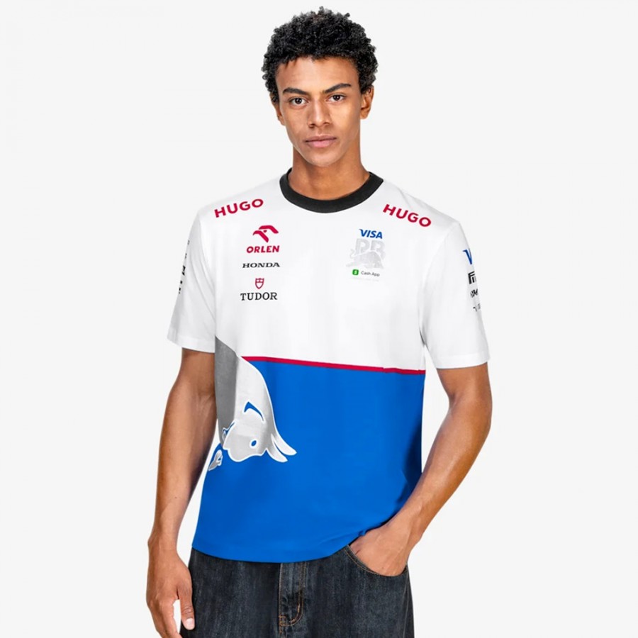 Designed with the dynamic raging bull on the side and team partner logos on the front and back the Visa Cash App RB Team T-shirt creates an authentic look the Racing Bulls fan.