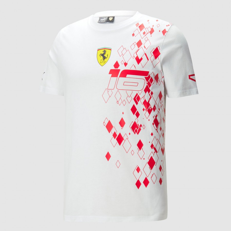 Launched to coincide with the 2023 Formula 1 Monaco GP, Charles' home race. This official PUMA Scuderia Ferrari T-shirt features a unique Monegasque themed print, centred around Leclerc's Ferrari driver number 16.